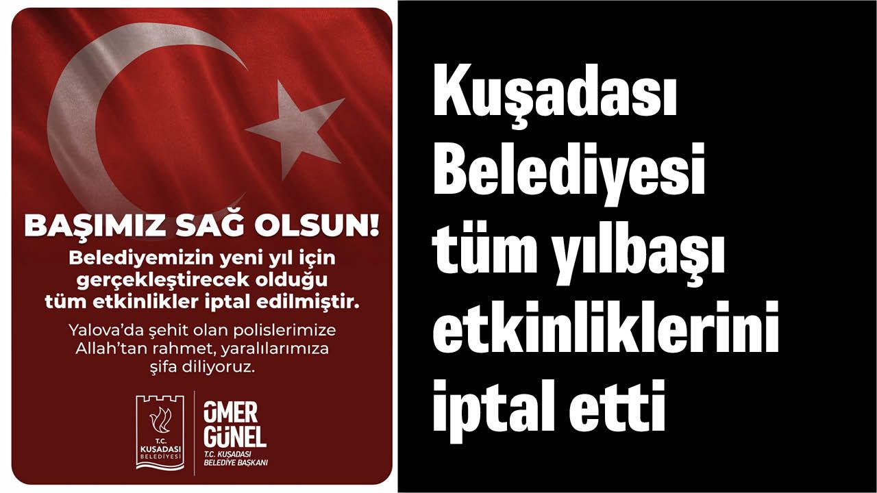 Kuşadası Belediyesi tarafından yapılan açıklama şu şekilde: “Belediyemizin yeni yıl için gerçekleştirecek olduğu tüm etkinlikler iptal edilmiştir. Yalova’da şehit olan polislerimize Allah’tan rahmet, yaralılarımıza şifa diliyoruz. Başımız sağ olsun.”